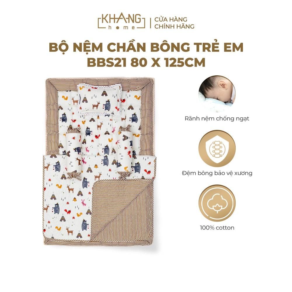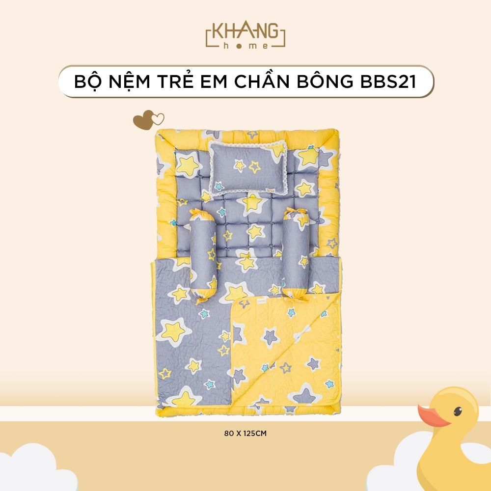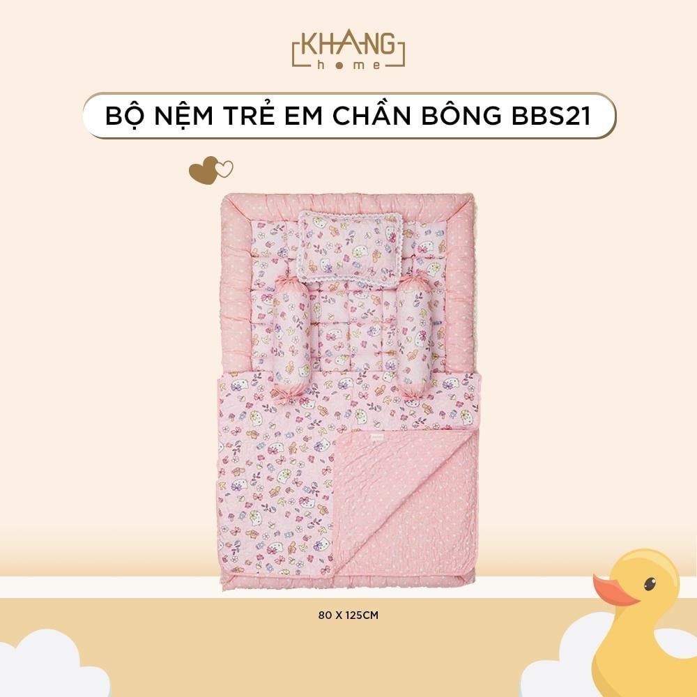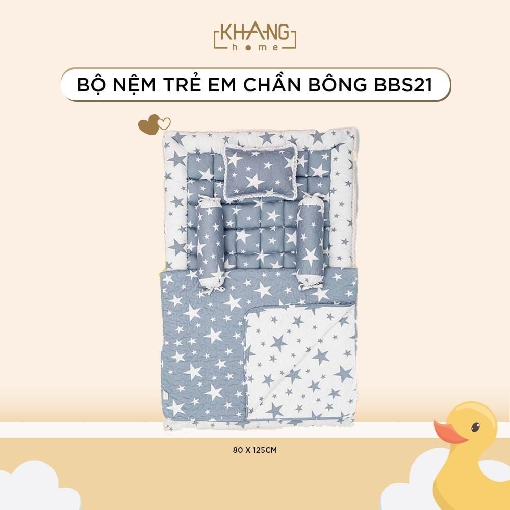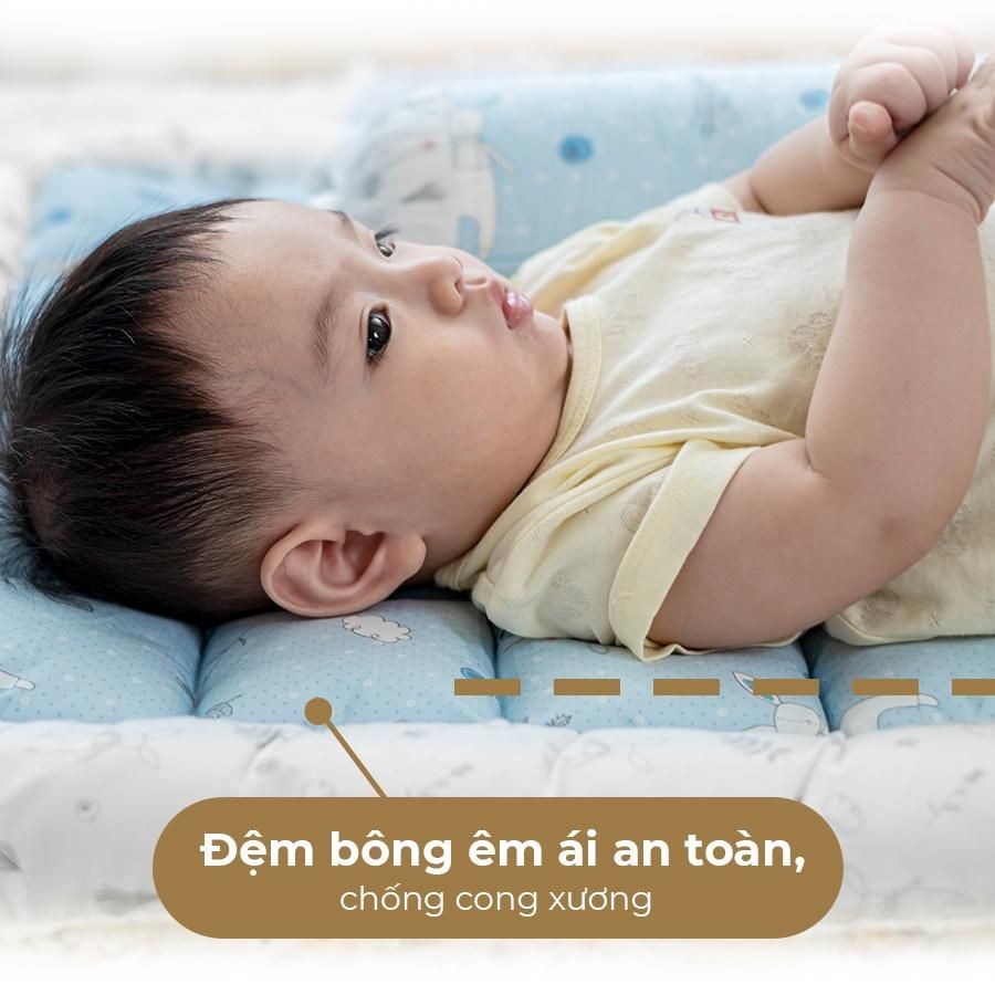 Bộ Nệm Trẻ Em Chần Bông Khang Home BabySafety An Toàn Giấc Ngủ Cho Bé Sơ Sinh Size 80x125cm