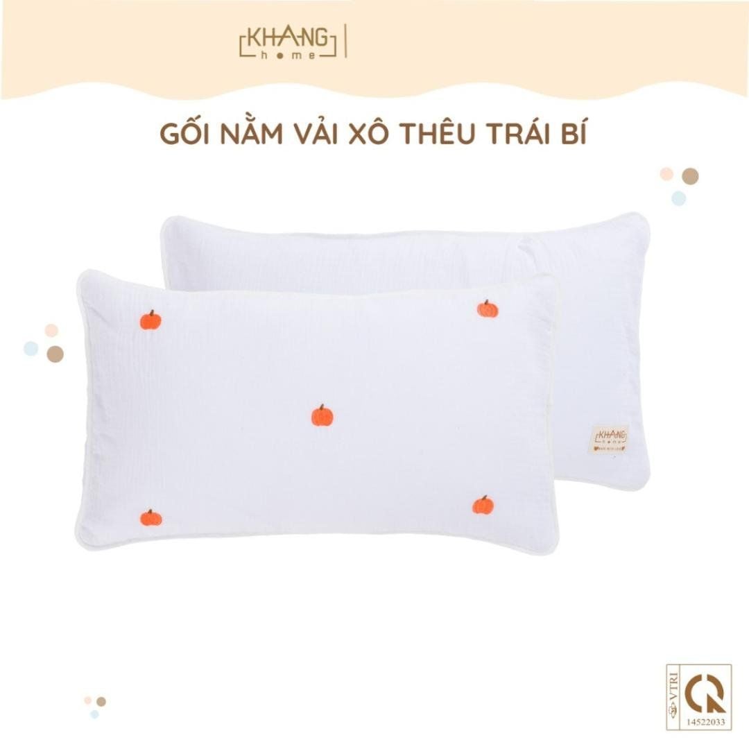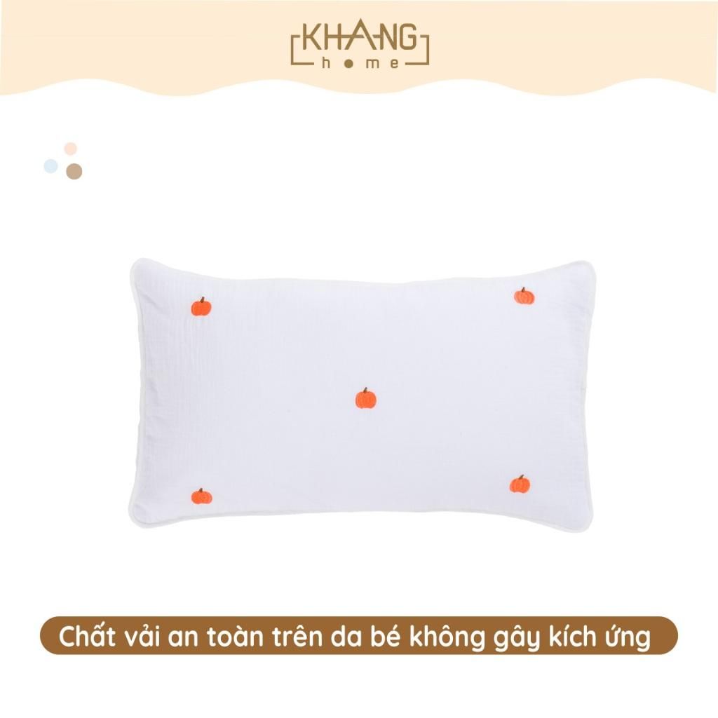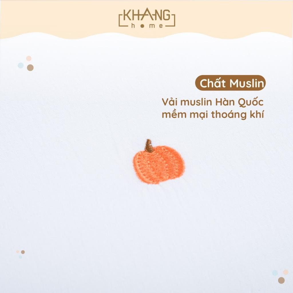 Gối Nằm Vải Xô Muslin Thêu Trái Bí Phiên Bản Halloween Cao Cấp KhangHome Thoáng Khí, Thấm Hút Nâng Niu Giấc Ngủ Của Bé