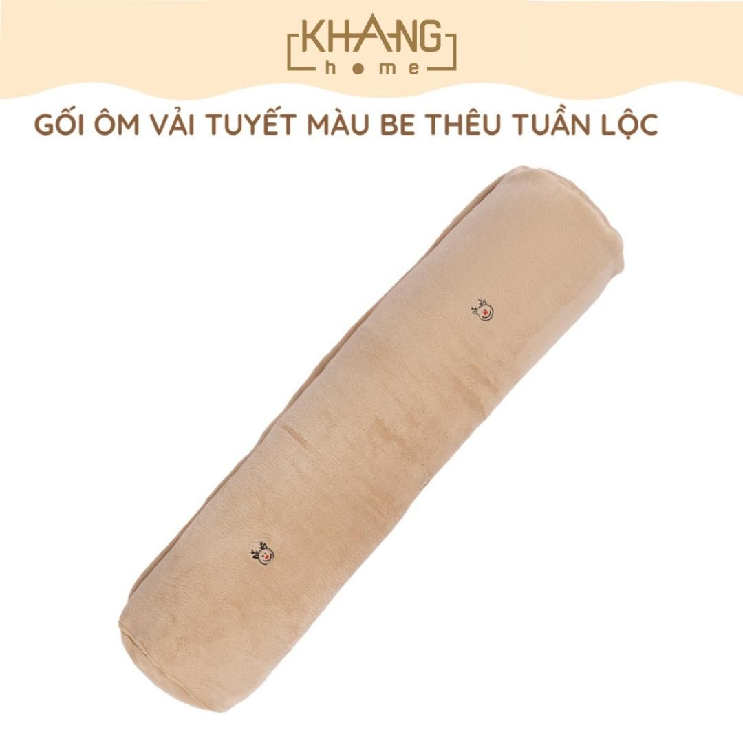 Gối Ôm Vải Tuyết Thêu Cao Cấp KhangHome Mềm Mại Cho Giấc Ngủ Của Bé Kích Thước 15x70cm