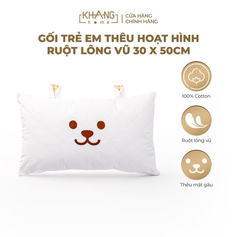 Gối Trẻ Em Hoạt Hình Ruột Lông Vũ ( Microfiber) Khang Home - An Toàn, Êm Ái Và Thoáng Mát Cho Bé 30x50cm